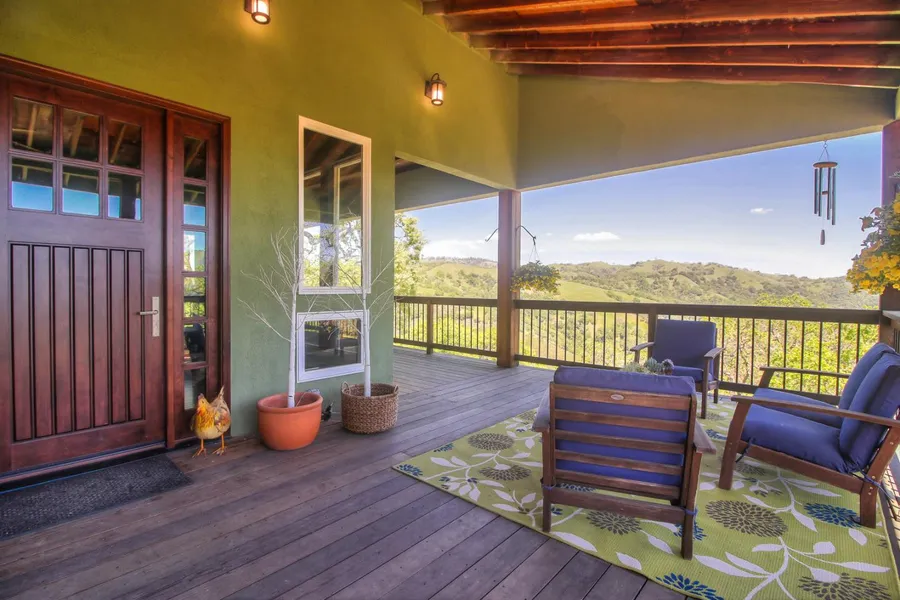 This Spectacular Off-The-Grid Solar home on 21 Acres has a very Peaceful Setting overlooking Coe Park. Enjoy Horses, Vineyard, Orchard, or Leave it Bare and Beautiful. Truly on top of a mountain this beautiful home is situated such that you can't see a single other home or building while standing on the expansive porch looking out. The home is Beautifully finished with extreme attention to detail, picking every material and making every design choice to support this oasis. From the huge living room to the farmhouse style kitchen and dining room, this home makes you feel at peace. The master retreat is located on the top level with views! The kids rooms are located off a separate family room perfect for home schooling. Plenty of water and electricity, all despite being 100% off grid. Approx. 25 minutes to Hwy 101 makes this location a "Doable Commute" or Work from Home with High Speed Internet. Solar Keeps you Comfortable Year Round with a Back-up Generator and a Full Battery System.