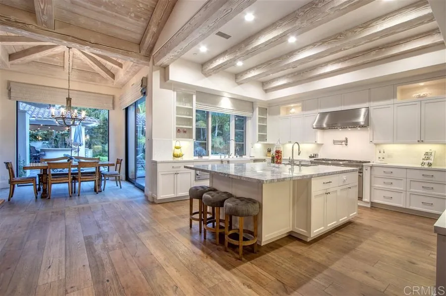 Custom built single-level estate just behind gates in the desirable Fairbanks Ranch community. Estate offers an unparalleled expression of casual elegance. Stunning architecture with well-designed indoor/outdoor living spaces, each room flowing seamlessly. Impeccable quality elements that include custom doors, light fixtures, gorgeous French oak wood flooring & intricate stonework. Theater room, wood-paneled office, wine cellar, detached casita plus 5-car garage spaces and large gated motor-court.
