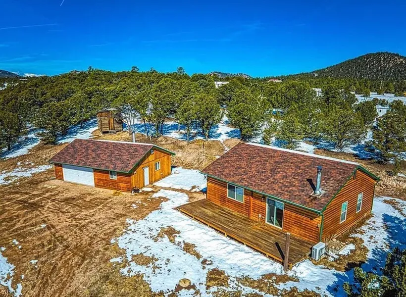 Mountain living at its finest! This pristine move-in ready 3 bedroom, 2 bath cabin house has stunning views of the Sangre de Cristo and Wet mountains from the south-facing 360 sq ft front deck, an oversized heated and insulated garage with a workshop and storage room, and a serene setting on close to 3 acres, for your year round enjoyment or recreational use. Bring your horses or other animals, there is plenty of space for additional outbuildings. For those who enjoy the freedoms of land ownership, this property comes without constraints of covenants or a homeowners association. Your creative spirit can roam as freely as the wildlife that frequently roams the property. Every corner of this home exudes a sense of care and attention to detail, a reflection of its devoted owners. It is a new build and the designer took care to keep the home beautifully simple and extremely energy efficient. The insulation is impeccable for year-round comfort. Equipped with electric heat, the wood stove, plus a super-efficient mini-split system, the home is cozy in the winter and is comfortably cool during the summer. Designed for casual and comfortable mountain living, the eat-in kitchen has tile floors and countertops, beautiful hickory cabinets, laundry, coffee bar, and opens to a large living room with vaulted ceiling lined with beetle kill pine, wood burning fireplace and sliding door with tile surround leading to the deck. Two large bedrooms are separated by a beautiful full guest bath with tile shower walls and flooring and solid surface countertop. The master bedroom has a large private bath with rustic tile accents, and two sinks. The oversized and insulated 2 car garage has plenty of space for parking cars and toys, plus offers a workshop room and a fully finished bedroom. The property also has a shed for additional storage. Located at 7,684 elevation and only .6 miles from a paved county road.