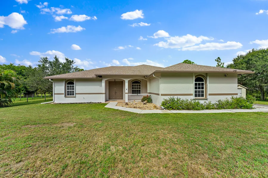 Fantastic opportunity to live on over 1.25 fenced and gated acres in desirable Jupiter Farms. This spacious 4 bedroom CBS construction home has been very well kept and maintained. Features include open kitchen, split bedroom plan, easy to use accordion hurricane shutters on all windows and doors, large covered patio, and so much more. Don's miss this great opportunity!