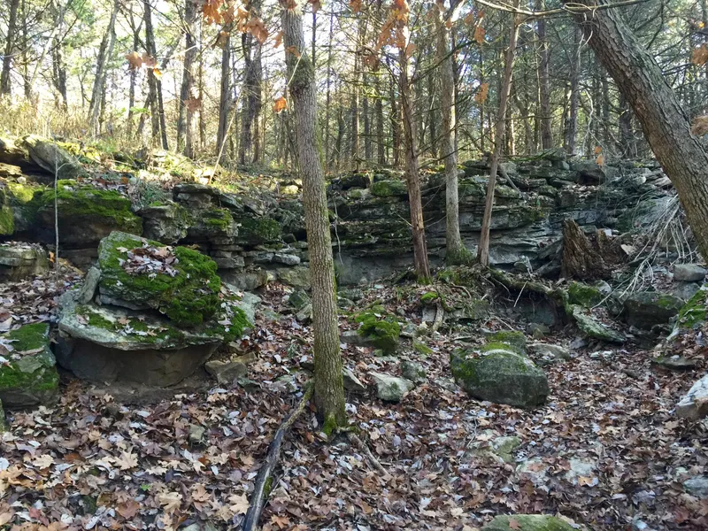 This is a classic Ozarks timber tract with quality mature mixed Oaks, Hickory, and dense Cedar groves. The White Oaks are producing massive quantities of acorns this Fall and the cedars are holding turkeys. Deer are bedding on the property as I flushed does in 4 different locations through out the day. A hunting cabin sits deep in the interior providing easy access to tree stands and a shooting house. The seasonal creek bed that runs through the middle of the property is wide enough to drive a 4-wheeler down and includes a 10ft waterfall cliff. Road frontage measures approximately 1/2 mile and allows for numerous building locations for a home and workshop.