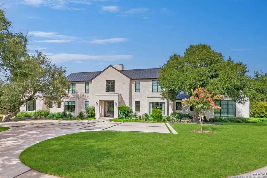 Welcome to this luxury estate featuring a transitional style home with an additional guest home and an executive par 3 golf course! With no neighboring houses in sight, this 9.6 acre gated property within Cordillera Ranch borders a river on one side and a nature park on the other side making this a unique offering in the Texas Hill Country. Both homes blend traditional architecture with striking designer finishes, smart home automation and modern comforts. Completed in 2023, both residences feature new biophilic design elements, open living areas with spacious rooms for gatherings of family & friends, vaulted ceilings with hand-hewn oak beams and expansive windows for long views of nature. 10-foot sliding glass doors that stack create an even more open and seamless indoor/outdoor living experience. Quality craftsmanship is evident throughout including Italian cabinetry by Snaidero, custom millwork, Porcelanosa marble tiled bathrooms, unique glass stair railing, floating cabinets, custom steel, wood & glass doors, floor-to-ceiling marble slab fireplace, large format limestone floors & stairs and a unique interior Living Wall featuring a variety of 170 plants with in ground irrigation for maintenance free care. Enjoy resort-style amenities in your own back yard including golf, kayaking, fishing & tubing in the river and swimming in a heated negative edge pool & spa with floating decks & sun ledges. There's even an indoor Hemlock wood sauna room! This expansive outdoor oasis provides hours of entertainment and relaxation for adults and children of all ages. The outdoor living room, cooking/dining room and negative edge spa are roof covered with outdoor heaters for year round enjoyment and protection from rain. With the touch of a button, all the electronic screens lower to enclose this outdoor patio. What fun it is to hang out in the oversized spa that seats so many friends while watching your favorite sporting event on the nearby TV! The side patio with a custom circle walkway features a unique sunken lounge with tiered built-in seating that's perfect for parties. State-of-the-art audio/visual systems, surround sound and monitored security components are strategically placed throughout both homes and patios which include indoor and outdoor TVs, hidden speakers and security cameras. Both houses offer chef's kitchens with top-of-the line appliances, stone counters, classic inset cabinetry with ample storage. Additional highlights include a coffee bar and a wine bar with quartzite counters and sink, lacquered cabinetry, 2 wine tower refrigerators, large walk-in pantry and a puppy shower in the mudroom. Artfully placed light fixtures adorn the walls and ceilings along with LeGrand designer electric components with unique shapes and metallic finishes. Combined the homes offer 6 spacious bedrooms with ensuite bathrooms, large curb less walk-in showers, 2 luxurious tubs, ceiling fans and automated curtains. The game room features a wet bar and under cabinet fridge/freezer. Enhanced by tree lighting, the professional landscaping is composed of all drought-tolerant native trees, plantings, grasses and realistic looking artificial turf for ease of maintenance. To ensure ample space for vehicles and storage, there are 7+ garage spaces. The full house generator ensures uninterrupted comfort. Such a gently used property as the homeowners have spent little time there so you receive the benefit of a nearly new estate. Master Full Golf Membership is available for purchase.