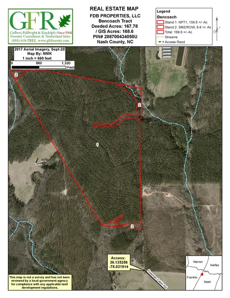 167.78 +/- acre (168.6 GIS acre) parcel containing 156.8 +/- acres of thinned pine plantation in Nash County, NC.