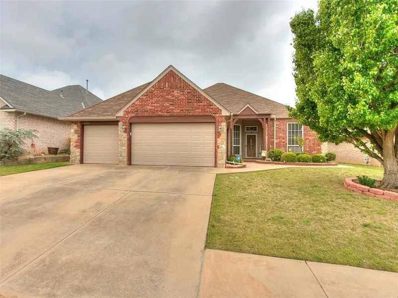 Edmond schools, gated addition! Fresh paint inside and outside... This spacious (over 2400 sqft), well-maintained 4-bed, 3 car garage, 2.5-bath beauty conveniently located in a gated addition! With an open and roomy floor plan, the oversized living room is great for entertaining! It's nestled in a peaceful gated community that boasts picturesque fishing ponds, walking trails, swimming pool, park, and clubhouse WOW! This gem features updated kitchen appliances from 2022, and a generous 3-car garage that's perfect for car enthusiasts or anyone who loves extra storage space. Refrigerator, dishwasher, stove and water softener system to remain with home! It's located in the highly coveted Edmond school district, West Field Elementary, Summit, and Santa Fe HS.