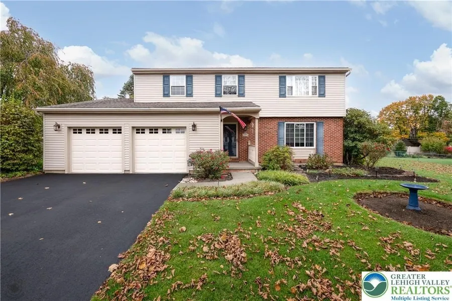 Welcome to this beautifully maintained 4-bedroom, 2.5-bath Colonial, ideally situated in the sought-after Lamplighter Development of Lower Macungie Township. Offering over 1,800 square feet of comfortable living space, this home blends inviting interiors with outdoor areas designed for entertaining and everyday enjoyment. Step inside to find a welcoming living room, a formal dining room perfect for gatherings, and a spacious family room featuring a cozy wood-burning fireplace. The eat-in kitchen offers plenty of space for casual dining and seamlessly connects to an expansive four-seasons room an ideal spot for entertaining or relaxing year-round. Upstairs, the generous primary suite features a walk-in closet, private bath, and a bonus vanity area. Three additional bedrooms and a full hallway bath complete the second floor, offering ample space for family, guests, or a home office. Step outside to a beautifully manicured backyard with a covered deck featuring a skylight and ceiling fan, flowing effortlessly to a large octagonal sun deck a perfect setting for outdoor dining or summer get-togethers. Additional highlights include hardwood and ceramic tile flooring on the main level, wall-to-wall carpeting upstairs, a two-car garage, a full basement providing abundant storage, and an oversized shed for all your outdoor essentials. Schedule your appointment today for this East Penn School District gem!