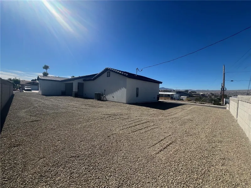 Brand New Home on a Corner Lot! This brand new home has everything you ve been looking for! It sits on a spacious corner lot with two entrances to the backyard, giving you plenty of room for your RV, boat, or other toys. Enjoy relaxing or grilling out on the covered back patio, and take comfort in the block wall fencing that adds privacy and security. Inside, you ll find a bright and open floor plan with a beautiful electric fireplace and plenty of natural light. The kitchen features stainless steel appliances, quartz countertops, and a large island with a chandelier that adds a touch of style. There are three comfortable bedrooms, including a primary suite with a walk-in shower and LED mirror. You ll also appreciate the indoor laundry room and porcelain tile flooring throughout for easy upkeep. This home is move-in ready and built with quality and care. Located in the heart of Bullhead City, you will be close to shopping, medical services, and the river with a boat launch just minutes away! Don t miss your chance to make it yours!