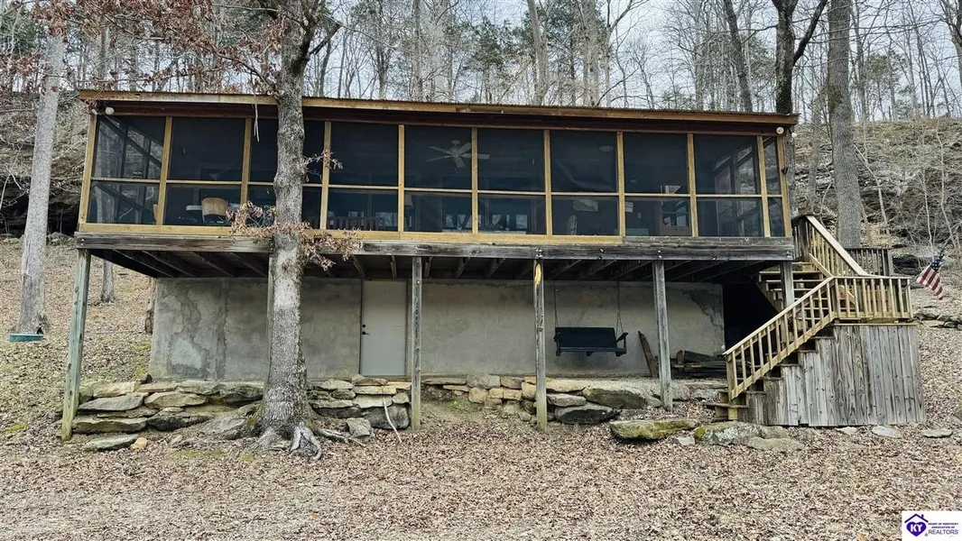Sitting on two lakefront lots, this charming 2 bedroom, 1 bath cabin with a loft is the perfect lake getaway! Enjoy your mornings or evenings on the spacious screened-in porch, where you can relax and take in the peaceful lake views. Towering cliffs provide a stunning backdrop for nights gathered around the campfire. An existing dock (transferable with COE approval) makes lake access a breeze, and there’s plenty of parking for friends and family. This cozy cottage on Rough River Lake is the perfect blend of relaxation and adventure. You truly have to see it in person to appreciate all it has to offer!