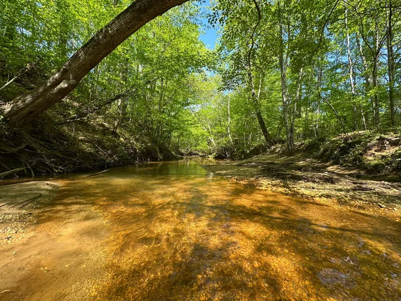 The Sandy Creek Tract is 168 acres +/- of land for sale near Centreville, in Bibb County, Alabama. The land lies approximately 6 miles east of Centreville, and fronts on US Highway 82. The land is primarily used for recreation and hunting. A natural gas pipeline runs the length of the property, providing long views, and good plots for wildlife. Sandy Creek is a large gravel bottom creek that flows through the property. An old wooden train bridge crosses Sandy Creek, giving a unique feature and charm to the property. This is an ideal location for someone wanting a recreational property close to Birmingham or Tuscaloosa. Power is available along the highway. If you wanted to construct a cabin, or have a place to bring an RV for game days in Tuscaloosa, this would be a good spot. The timber on the property was cut approximately 7 to 10 years ago. The majority of it was allowed to naturally regrow, and the owner thinks maybe 30 to 35 acres of it was replanted in pines.