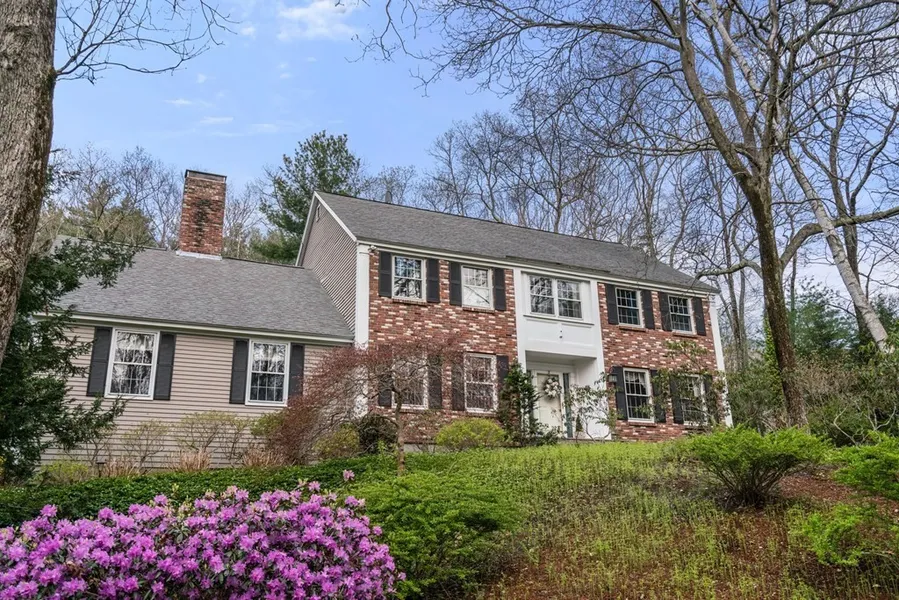 Quintessential New England Living! Classic Brick Front Colonial adjacent a cul-de-sac in sought-after location, privately perched amongst lush landscaping of mature flowering shrubs & perennials. Well appointed living spaces on the 1st floor: gracious fireplaced living room, elegant dining room & a designated home office. To compliment it is a cathedral ceilinged family room w/a brick double-sided fireplace that opens to the 2016 custom designed chef's kitchen w/ top appliances, generous-sized center island and breakfast area with French doors & a large picture window overlooking the expansive deck & inground pool. Spacious primary bedroom suite and 3 good-size family bedrooms on the 2nd floor. Hardwood floors throughout 1st & 2nd floors. Heated playroom w/ terracotta tiles in the lower level. Well maintained w/ many recent updates that include family bath, powder room and heating system. Short distance to Bruce Freeman Trail & White Pond. Minutes to Elementary & Middle schools.