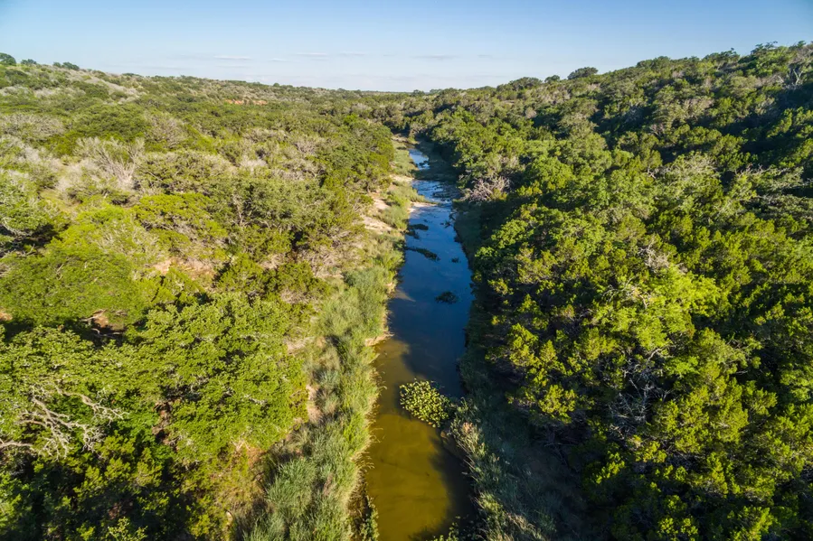 LAND: The site itself is the ruggedly handsome breaks generally associated with the major drainages that feed the Llano River in this region. This is rough country with some spectacular limestone cliffs, as well as rumored caves. There is little to no smooth land, however there are numerous building sites adjacent to the water, as well as on the higher ground with distant views to the Blue Mountains.