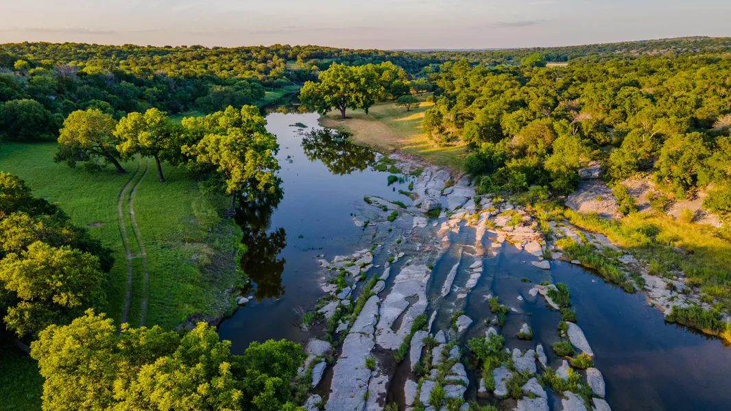 Ancient native pecan trees shade the gently sloping banks, creating an oasis where family and friends can splash in the cool water or pull bass and seasonally stocked trout from its depths. Humans, as evidenced by several Indian mounds in proximity to the creek, have long sought out its life-giving bounty.