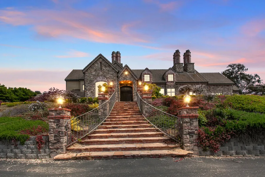 Discover timeless charm and modern luxury in this custom-built English-style estate, tucked behind private gates on over five beautifully landscaped acres. Showcasing rich stone-and-brick architecture, four grand chimneys, and sweeping hilltop views, this home is truly one of a kind. The main residence offers 4,943 sq ft of refined living space, including four bedrooms, six baths, and four distinctive fireplaces. A detached 1,391 sq ft guest house adds flexibility with a kitchenette, spa-like bath, and a quiet office—ideal for visitors or remote work. For car lovers and entertainers, the property features a 3-car garage plus a 10-car/RV garage with a newly renovated game and media room (975 sq ft not included in total living space). Outdoor spaces are built for gathering, with covered patios, a full outdoor kitchen, BBQ area, and a cozy fireplace. Lush gardens, orchards, vineyards, and rolling lawns create a peaceful, private retreat. Meticulously updated with today’s comforts while preserving its classic elegance, this estate offers an unmatched lifestyle in one of Arroyo Grande’s most exclusive settings.