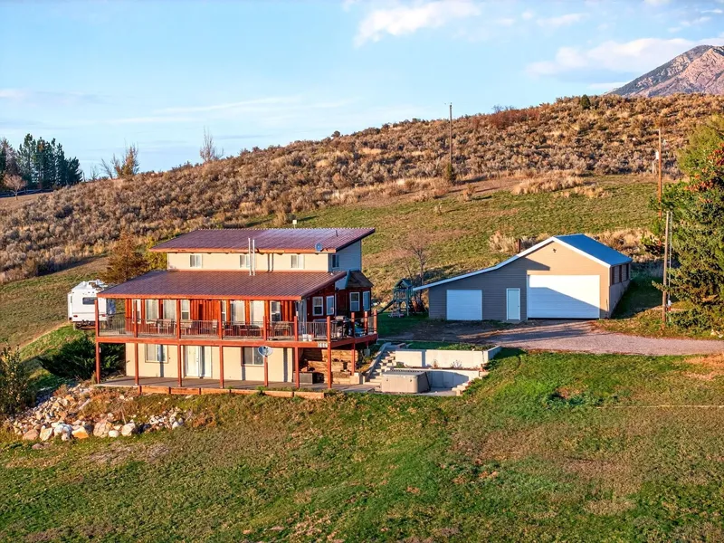 Escape to your own rustic retreat in this stunning log home set on over 3 acres in a peaceful setting. With views for days, this spacious property offers 6 bedrooms (including 2 with private en-suites) and 3.5 baths. The main level showcases vaulted ceilings with exposed wood beams, a warm, inviting atmosphere, and seamless flow to the wrap-around deck. Soak in the scenery in the included hot tub! The finished walk-out basement provides additional living space, while the detached 3-car garage/shop offers ample room for vehicles and hobbies. Enjoy the orchard with automatic sprinklers, and upgraded furnace (2021) for year-round comfort. Conveniently located with easy I-15 access and just minutes from Pebble Creek Ski Area, this property combines rustic charm, modern comfort, and incredible outdoor living.