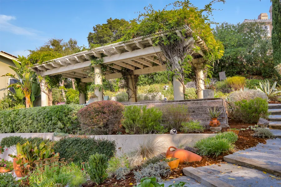 Incredible location with views yet a quick stroll to downtown Los Gatos! City lights will captivate! Large picture windows and spacious rooms. Light and bright, the gracious foyer overlooks living room and dining room. Just beyond, the kitchen and great room open to the large rear yard. One bedroom/office on main floor with access to a full bath. Upstairs, the primary bedroom suite enjoys a front row seat to city light views. Two additional guest bedrooms share hall bath. Downstairs are the 5th bedroom, bath, wine room and garage. Enjoy a beautiful rear yard with spacious patio area and built-in BBQ. Lovely wisteria covers the terrace, a perfect spot to enjoy beautiful sunsets. The meandering path leads to sport court and trampoline. Ample onsite parking on spacious paver drive or within the 4 car garage. Rarely available, this incredible property offers a wonderful floorplan with generous rooms, a perfect setting for city light and mountain views and close proximity to downtown Los Gatos, freeway access and top Los Gatos schools!