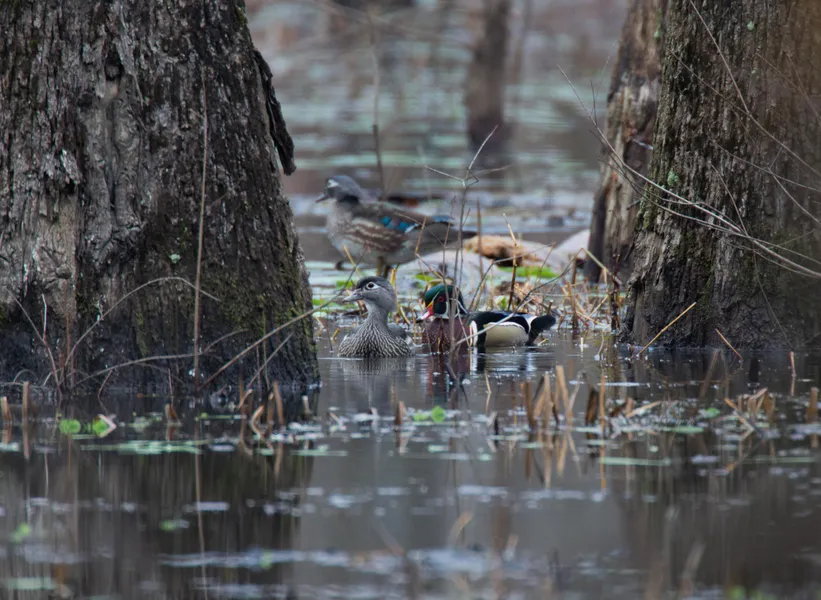 *34-acre wooded slough and numerous waterholes provide a protected area where ducks like to congregate.