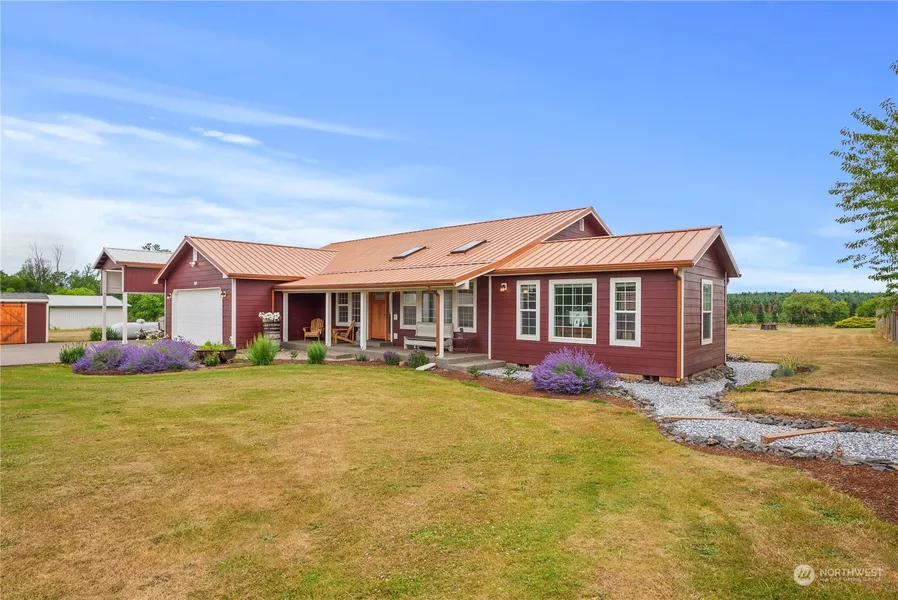 This may be the property you have been searching for. 5+ acres, all useable with attractive ranch-style house and huge 40' X 60' shop building. House sports an attractive metal roof, cement plank siding, and a large composite deck - enjoy the low maintenance. The almost 2,200 sq ft home has 3 bedrooms, 2 baths, granite countertops, stainless appliances, great room, open floor plan with large office/media room. Heat pump/AC, vaulted ceilings, skylights, and auto-start whole-generator. Add a few additional outbuildings, 2 large-fenced garden areas, fruit trees, chicken house, covered RV parking with full hookups, fencing for horses or other livestock, high-output well.... What an amazing property at a great price. Come look today!!