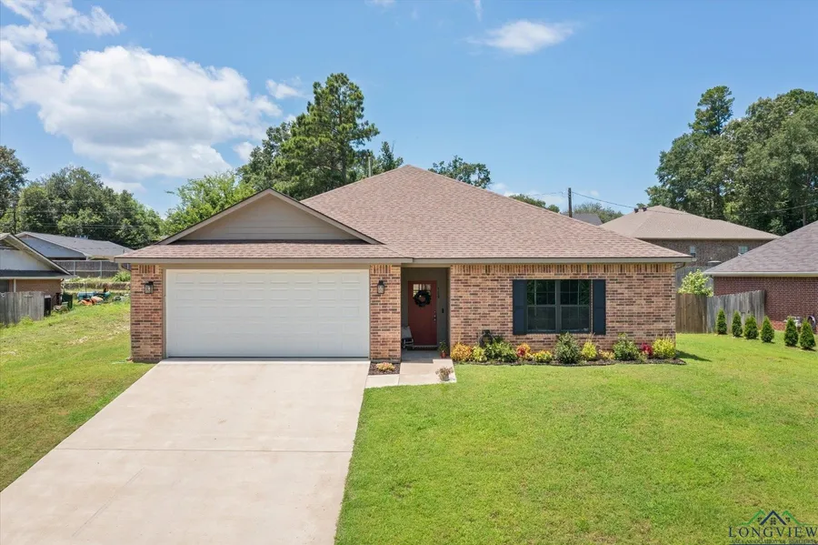 Welcome to this beautiful 3-bedroom, 2-bathroom home, ideally located within walking distance to Gilmer High School. Built in 2022, this 1,888 sq ft residence offers the perfect blend of modern comfort and convenience. Step inside to discover an inviting open living space filled with abundant natural light, making it perfect for relaxing or entertaining guests. The spacious kitchen features ample cabinetry, a generous pantry, and plenty of counter space for all your culinary adventures. Retreat to the serene master suite, complete with a well-appointed bathroom and plenty of closet space. Two additional bedrooms and a second full bath provide flexibility for family, guests, or a home office. Enjoy outdoor living in the fenced backyard, featuring a covered patio—ideal for morning coffee or evening gatherings. The two-car garage offers ample storage and parking. Don’t miss your chance to own this move-in ready home in a prime Gilmer location. Schedule your tour today!