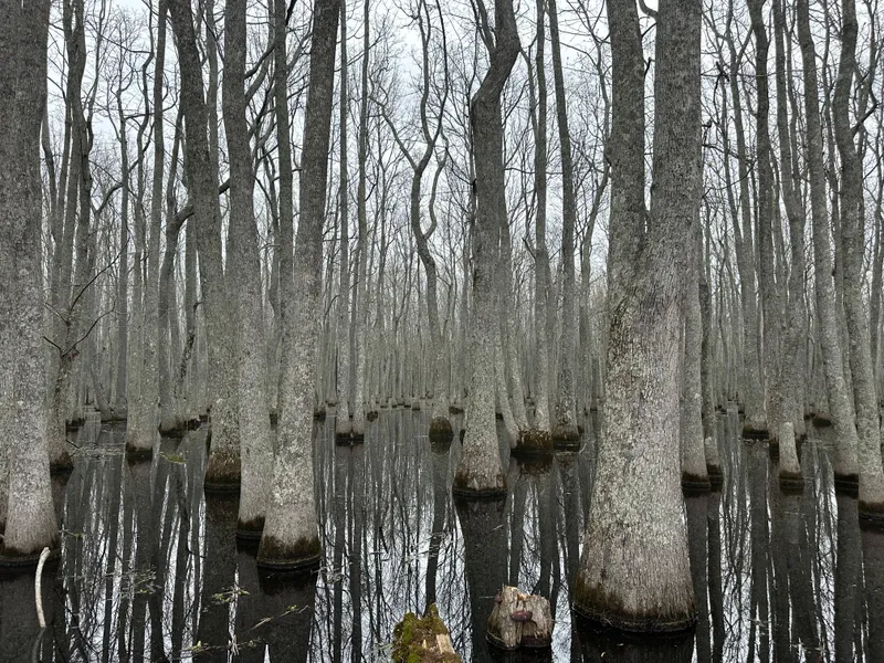 10 +/- miles northwest of Mathews Brake National Wildlife Refuge