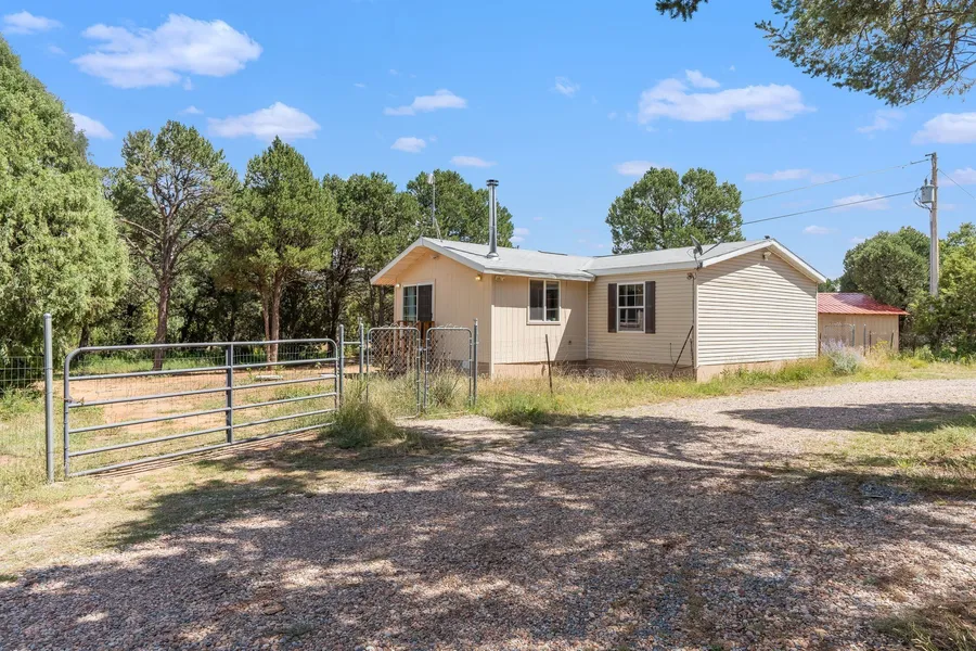 Escape to your own private mountain haven with this charming property tucked away on 4 wooded acres in Rowe, NM. Located just 30 minutes from Santa Fe, 40 minutes from Las Vegas, and less than 15 minutes to Pecos, this property is ideally situated for both convenience and adventure. Surrounded by pinon and other native trees and local wildlife, this retreat offers peace, seclusion, and plenty of room to grow. Roughly 1/3 of the property is fenced in, making an ideal dog run. The main home is a cozy 2-bedroom manufactured house with an expanded living area, creating a warm and inviting space to relax after a day outdoors. A separate guest casita provides extra room for visitors, hobbies, or even rental potential. The casita also features granite countertops,stainless steel appliances, and engineered hardwood floors. In addition, three versatile sheds offer ample storage for tools, equipment, or outdoor gear. The surrounding area is a paradise for outdoor enthusiasts-whether you enjoy hunting, fishing, camping, hiking, or simply taking in the fresh mountain air, you'll find it all right at your doorstep. If you've been looking for a serene getaway with space to expand, this Rowe retreat is ready to welcome you home.
