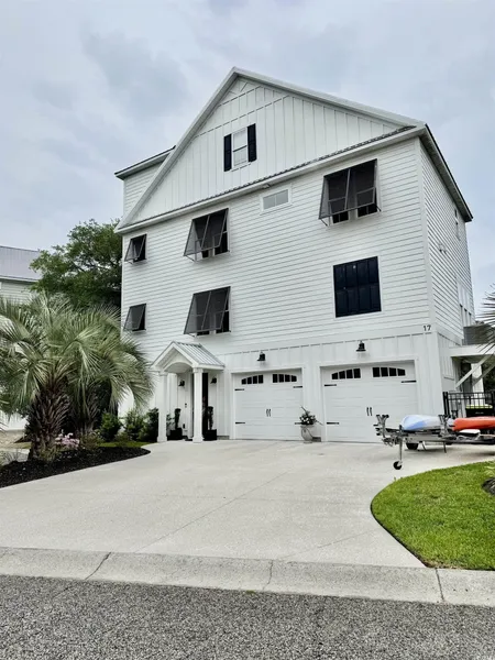 Paradise on the Inlet!! Masterful design and modern luxury are uniquely embodied in this beautiful beach style home that offers 4 bedrooms and 4.5 bathrooms. This magnificent waterfront residence with a working dock is perfect for gazing at Murrells Inlet views from multiple vantage points. Every detail on this home has been carefully selected and quality crafted by a custom home builder. Highlights include upgraded appliance stainless steel appliances, quartz countertops, LVT Floors, tile & carpet. Enjoy docking your watercraft on a shared stationary dock with floating docks for jet skis. Have a cookout creek side and feel the refreshing inlet breeze as you relax on your patio. There is parking and additional storage underneath in a spacious garage and a beautiful professionally landscaped yard. Wake up in the master bedroom with amazing views of the inlet. The master has stacked washer/dryer for your convenience. There are 3 bedrooms, 3 full baths, a laundry room, and sitting room on the second floor. This home is a must see. Book your showing today. Seller is licensed SC real estate agent.