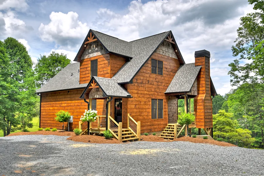 Welcome to your dream mountain retreat! This stunning new construction cabin offers the perfect blend of rustic charm. Step inside to discover a spacious open floor plan, where the kitchen seamlessly flows into the living area, making it ideal for entertaining family and friends. The kitchen features custom cabinets, island, granite countertops and stainless steel appliances and a perfect cozy spot for a dining table. Vaulted ceilings soar overhead in the living room, creating an airy and expansive ambiance. The large rock fireplace, adds a touch of rustic elegance to the space. Doors and windows frame picturesque views of the surrounding landscape, bringing the beauty of nature indoors. The large master bedroom on the main level features an ensuite bathroom with double vanities, walk-in tile shower, and two closets to accommodate all your wardrobe needs. Upstairs, you'll find two more bedrooms, perfect for family members or guests. A full bathroom is conveniently situated between the bedrooms. Descend to the basement level and discover a spacious entertainment and living area, complete with a ventless gas rock fireplace that radiates warmth and ambiance. Whether you're hosting game nights with friends or cozying up with loved ones for movie marathons, this versatile space is sure to be the heart of your home. A fourth room also awaits, offering endless possibilities as a home office, gym, or bunk room for accommodating additional guests. A third full bathroom is also conveniently located on this level. Step outside to the expansive double-covered porches, where you can relax and unwind. This home exudes warmth and character with its perfect mixture of different wood finishes. Conveniently located just 15 minutes from both Lake Blue Ridge and Lake Nottely, you'll have easy access to a variety of outdoor recreational activities. Whether you're seeking adventure or relaxation, this mountain retreat offers the perfect balance of serenity and excitement.