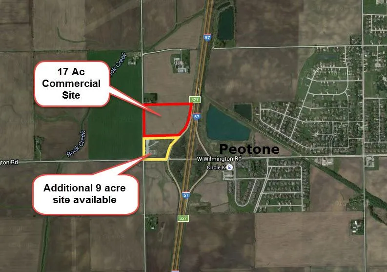 17 acres with I-57 frontage at the Peotone exit. Excellent commercial potential. Adjacent 9 acres available at the intersection of Wilmington-Peotone road and 88th avenue.