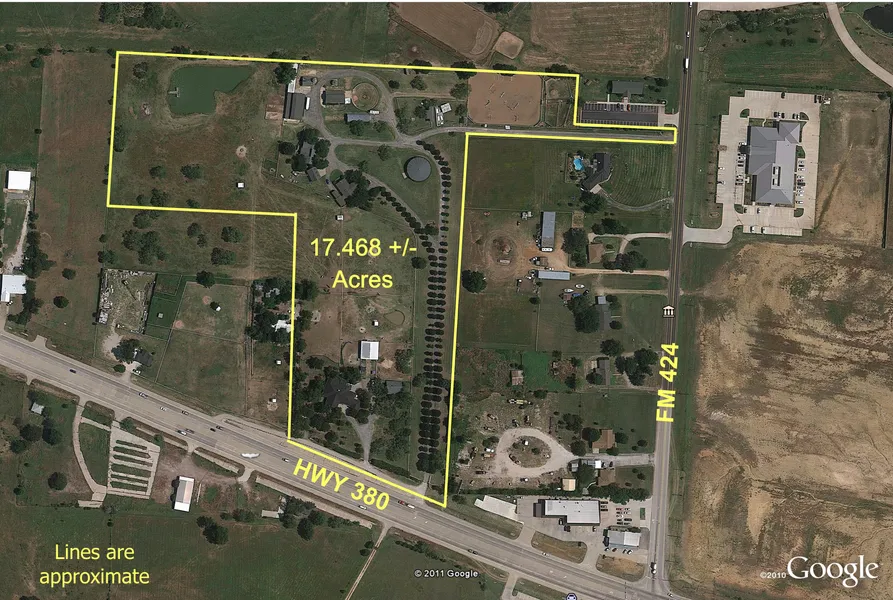 GREAT COMMERCIAL POTENTIAL! This approximately 17 acre tract is located on Highway 380 in Crossroads with frontage on 380 and FM 424. $7500 per month in rental income potential, 4 homes and 3 barns in a rapidly developing area. buyer to verify all info.