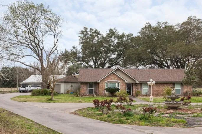 3/2/5 Home on 17+ Acres w/300 ft FM 1462 Rd Frontage by TX-35. Updated Home has tile entry-kitchen-living-baths & hardwood floors in dining. Cathedral Ceiling w/Stained-Glass Windows in Living. Large Gameroom w/fp. Bay Window Seat in Dining. 22x26 Covered back porch overlooks beautiful in-ground pool w/waterfall. Double hung LoE vinyl windows. Kenmore Elite dual fuel oven/gas range. 5-Car Garage/1-Car Carport. Former Airstrip w/Airplane Hanger!2010 well water pump. 2013 Aerobic system. Water Softener System. Gas Water Heater. Auto Underground Sprinklers.