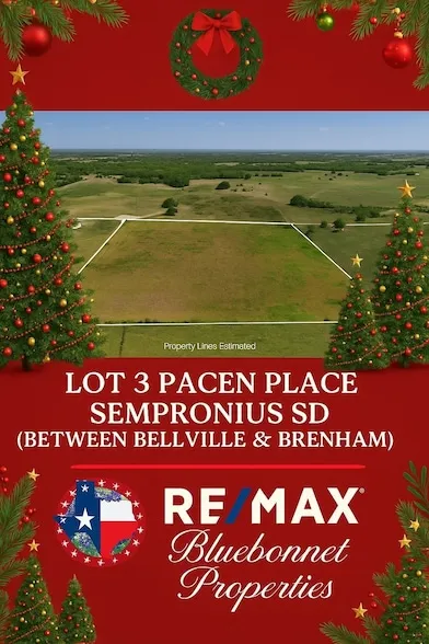 New Listing New Price! Lot 3 is competitively priced below 2025 Austin County Appraisal District market value! Natural, scenic land with open rural views, conveniently located off Hwy 36 between Bellville & Brenham in the 7-acreage lots in Sempronius Subdivision and with county-maintained road access. Want a family member or guest 2nd home? No problem deed restrictions allow one to build two single-family homes on your lot: 1,800 SF minimum for main residence, 1,100 SF minimum for secondary. Livestock allowed per deed restrictions horses, cows, goats, chickens, and other domestic fowl. AG exemption in place with cattle maintained on property. Contact listing agent for details. Great location, flexible use, and attractive terms perfect for buyers seeking rural living with investment potential.
