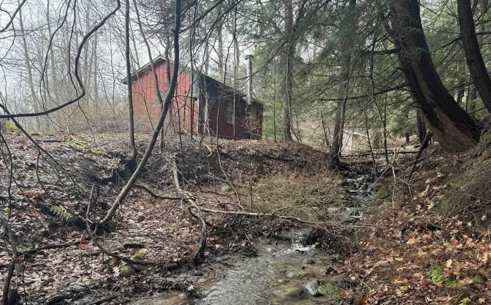 Getaway cabin in Cattaraugus County on 17.71+/- acres with a flowing stream.