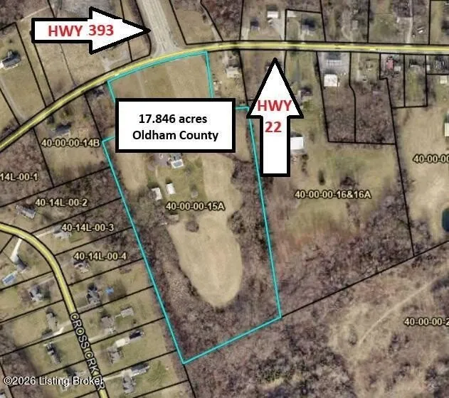 Remarks: Opportunity knocks! OLDHAM COUNTY DEVELOPMENT OPPORTUNITY 17.85 ACRES. Prime location at intersection of Hwy 22 and Hwy 393. Zoned R-2.