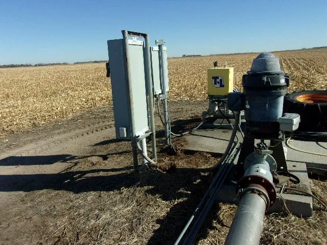 Equipment: 2008 T-L 7 tower center pivot, drop nozzles and 11.2-38 tires. 2016 corner system w/ 16.00R20 tires. The pivot is powered by a 20 hp electric motor. There is also an 8 irrigation well w/ a Flowserve model 12SK pump and US Motors 75 hp electric motor.