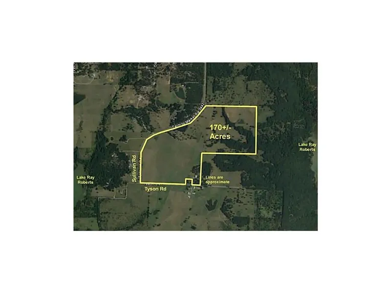 Approx 170 ac on peninsula surrounded by Lake Ray Roberts. Prime property, lush soil, amazing views, great location 6 min from I35. Frontage on FM3442 and Tyson, 2 ponds, excellent pastures with extremely clean coastal, fenced, cross fenced, lake view, deer, turkey, large workshop, bordering corps property! A MUST SEE!! Buyer to verify all information.