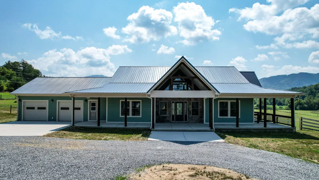 Welcome home to East Tennessee where this custom-built house has a beautiful setting among the Appalachian Mountains. The surrounding views and nearby trails are enticing for nature lovers and those seeking a peaceful forever home. The fact that it is situated on14 acres among mountains and with a wrap-around covered porch adds to its charm and appeal. Let us not forget the large ''bullseye'' pond and running creek on the property's edge. The house is 2440 square feet and designed for one-level living, making it convenient and accessible for all ages. The 1752 square feet wrap-around covered porch offers ample space to enjoy the scenic views from different angles. The Main bedroom provides awe-inspiring views of the surrounding pasture, pond, and Appalachian Mountains. The on-suite features a soaking tub and a large walk-in shower for added luxury. Each bedroom has large closets, and one of the bedrooms has a private bathroom, potentially serving as an in-law suite. The kitchen boasts custom cabinets, a large electric flat-top range, and a spacious island with storage and seating, perfect for culinary enthusiasts. The open living area, framed by custom 8'' beam trusses with a cathedral ceiling lined in knotty pine wood, creates a welcoming and spacious ambiance. The property features a level to slightly sloping terrain towards the pond. A fenced pasture for added privacy and security is ready for farm animals. The outbuilding can be converted into a barn or workshop, catering to various needs. The home is designed with energy-efficient features, such as insulated double-pane windows filled with argon gas, which helps in maintaining a comfortable indoor environment. The home is built to a better-than-average grade, with roof trusses and floor joists placed on 16'' centers. The walk-out basement is constructed with double walls and solid concrete pourings, ensuring durability and stability. Overall, this home offers a perfect blend of natural beauty and design.