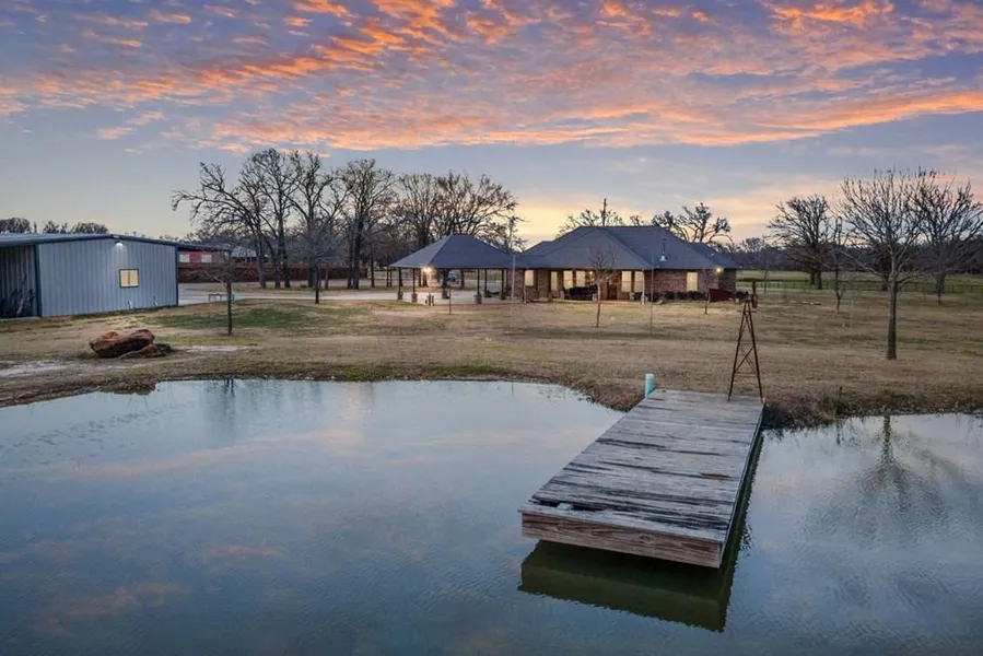 Beautiful custom-built home sits on 16.07 acres and is located on a quiet country road with easy access to I -20. This meticulously maintained property is just minutes to Van and Canton, 35 minutes to Tyler, and 1 hour to Dallas. Good roads all the way to the gate, concrete driveway, and circular turnaround. Home features 2250 square feet of living space, with 4 bedrooms, 2 full baths, and a large covered back porch with great views. Some of the amenities include granite countertops, a walk-in pantry in the kitchen with a working island, gorgeous cabinets, 10' ceilings, 3 stack crown molding, a wood burning stove, stained concrete floors in the living area, mesquite hardwood veneer floors and large closets in the bedrooms as well as marble vanities in each bath. Split bedroom arrangement with open concept. Oversized master with huge walk-in shower and double vanity and large walk-in closets. Mudroom, and central vacuum. Outside there is a 30x50 insulated metal building workshop finished out, with 2 bay doors and covered awning in the front and back great for covered storage, and a 24x75 pole barn for additional storage. 18ft deep pond with fishing dock stocked with catfish. Plenty of room for 4H horses or a second home. Located in the Award-Winning Van ISD. Home has Spectrum High Speed internet.
