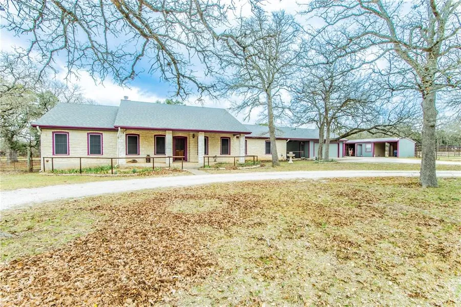 Loveley ranch home tucked under cool oaks in rural Georgetown. Once inside you'll notice a spacious home office to your right with an amazing architectural detail in the ceiling. A large coffered area with indirect lighting. Also note that the stately oak desk conveys. Moving on into the living room is a country inspired stone fireplace as your focal point and strategically inlayed wood flooring to display your furniture. Passing through the living area and on to the enclosed sunroom/ additional living space you'll find a safe place to keep your plants all winter with a built in planting rack. Through the fantastic, large kitchen with tons of cabinetry and huge island is an enormous bonus room. This room could easily have a bathroom and kitchenette added. The bedrooms are in an in-law arrangement and are spacious and bright. The pimary bath is large, designed well and has massive amounts of storage. Going out back youll find a breezeway for seating, horse barns with stalls and a tack room, pipe fencing, additional storage spaces and even more magnificent oaks! This property and home are amazing and peaceful.