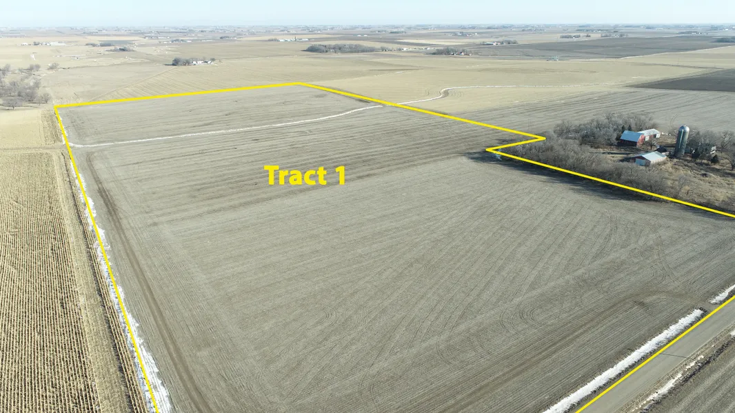 Tracts 1 & 2 Location: From the Sioux Center, IA Hospital go 1 mile East on 400th St. to Hickory Ave then go 1 mile South on Hickory Ave to 410th St then go 1 1/4 mile East on 410th St to the site of Tract 1. Tract 2 lies directly adjoining Tract 1 to the East. Both tracts lie on the North side of 410th St.