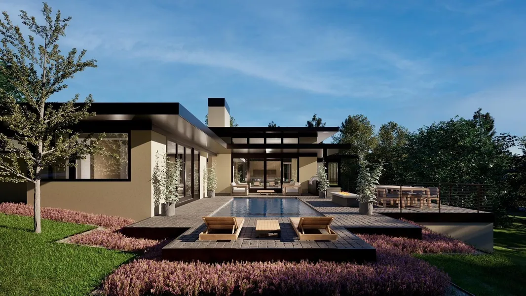 Step into modern luxury with this stunning contemporary home featuring main level living, where sophistication meets functionality in every detail. As you enter, natural light floods the expansive open floor plan, highlighting sleek lines and designer finishes throughout. The spacious living area boasts high ceilings and panoramic views, creating an inviting atmosphere perfect for entertaining or relaxation. The open kitchen features top-of-the-line appliances, custom walnut cabinetry, and a large island. Retreat to the primary suite, a sanctuary of tranquility with its luxurious spa-like bathroom. Linked to the main residence, the private guest house offers complete independence and comfort for visitors or extended family. Featuring its own living area, kitchenette, bedroom and bathroom, it's an ideal retreat which opens up to the outdoor pool terrace. The seamless integration of indoor and outdoor spaces enhances the home's allure, providing a perfect balance of serenity and sophistication. *Pool is optional*