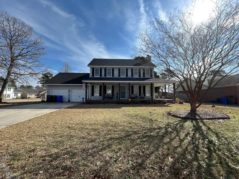 Look at this very well-kept 2-story, 3 bedroom bath home close to all your needs and only 15 minutes to the All-American gate to Fort Bragg. This home has a covered front porch extending across the whole front and partially wrapping around the side to another entrance into the living room. A concrete driveway leading up to the sheetrocked 2-car garage with a rear service door straight to the fenced-in backyard makes shuffling kids and pets easy. As you enter the home, the left side is a very open kitchen with an island and flowing to the dining area with a bay window to the backyard. On the opposite side, the open living area leads to double French doors out to the deck. The laundry room and garage door are conveniently off the kitchen dining area, a pantry, and a half bath. All bedrooms and 2 full baths are on the second-floor level. Give us a call today for your private showing.