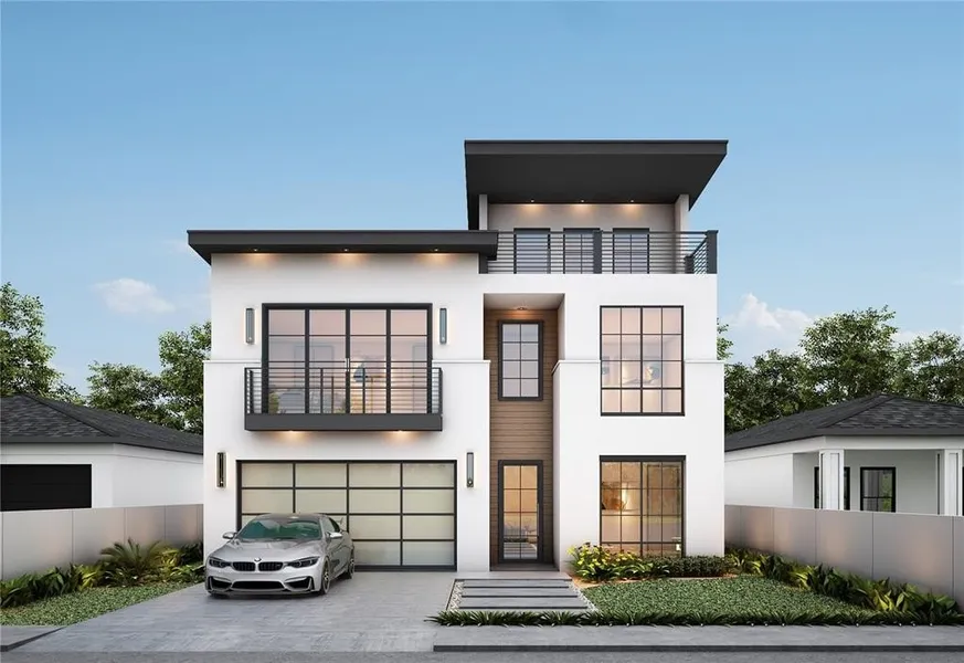 Can be custom built by the builder! New construction with an incredible 3rd story rooftop terrace, & walking distance to The Plaza District shops & restaurants! Offering 4 bedrooms, 4 bathrooms, two living rooms & more! This sleek architectural design is characterized by its clean lines, large windows, and a blend of modern luxury materials that create a striking facade. The gourmet kitchen features state-of-the-art appliances, custom cabinetry, a built-in refrigerator, & a spacious island perfect for culinary enthusiasts & entertaining. Grand living room with built-ins, an artistic modern fireplace, light-filled open-concept living space, & highlighted by luxurious finishes. Oasis master suite boasting a private balcony, & a dreamy walk-in closet. The master spa-like bathroom includes a double vanity, an incredible walk-in shower two shower heads, and a soaking tub to relax in after a long day. Beautiful custom wine rack, stunning dining space, & double-opening glass doors that flow right to the modern backyard area. A peaceful downstairs home office can also serve as a bedroom. Downstairs half bath for guests. The 2nd floor offers a tranquil retreat with 3 bedrooms, each offering ample closet space. Gorgeous guest bathroom with a tub shower, double vanity, & contemporary tile work. Huge laundry room with tons of storage. Ascend to the 3rd floor to discover a versatile space that can be used as a media room, or an additional 5th bedroom complete with a half bath. Access to a 3rd story rooftop terrace providing breathtaking views. This modern masterpiece has the latest smart home technology, ensuring convenience and efficiency. A spacious two-car garage that is wired for an electric car charger to be installed. The builder is building two additional new construction homes on the lots to the east and west of the home which include 1709 & 1713 NW 14th. Enjoy Midtown & The Plaza District offering an array of entertainment!