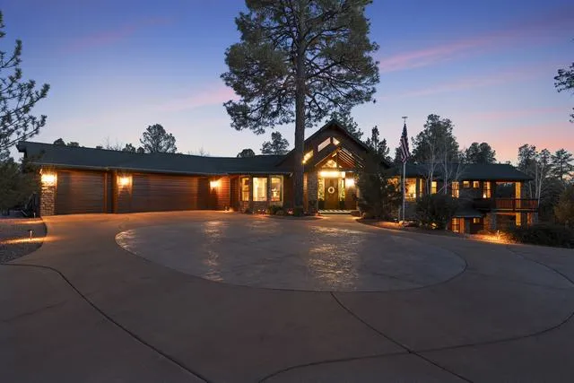 Stunning mountain estate nestled on 2.5 /- acres, a rare find, no HOA, and backing onto the National Forest, offering a unique connection to nature and endless outdoor adventures. The fully fenced property with gated, private driveway boasts impeccable landscaping, creating a picturesque and tranquil retreat. The exterior sets the stage for the remarkable interior features. Step into the main living level, thoughtfully designed with no steps for convenience. The grand entrance leads to a spacious family room with floor-to-ceiling windows, a vaulted ceiling with tongue and groove detailing, along with rock accents on the fireplace. The open concept seamlessly connects the family room to the gourmet kitchen, equipped with Décor double ovens, a Viking 6-burner stove, Sub-zero refrigerator, Bosch dishwasher, granite countertops, a large walk-in pantry, and both a breakfast nook and bar for casual dining. The generous laundry room is equipped with a pet shower. The interior boasts a mix of tile and wood flooring, with carpeted bedrooms for comfort. The primary bedroom suite is a sanctuary, featuring a fireplace, a separate sitting room, walk-in shower, dual vanities, dual closets, and private covered decks to soak in the mountain views. A versatile den/office/bedroom with built-in shelving and a walk-in closet adds to the functionality. The walk-out basement hosts guest suites and a second family room, providing additional living and entertainment space. The oversized three-plus car garage with epoxied flooring includes a workshop. A detached storage shed with power is perfect for storing toys and equipment. High-quality finishes throughout, including eight-foot knotty alder doors and cabinets. The property's natural landscaping, fruit trees, and a large, covered entry make a lasting impression. The backyard is an entertainer's paradise, featuring a covered deck, built-in BBQ, and AstroTurf for easy maintenance. Privacy is paramount, and the property even includes a private gate providing direct access to the National Forest and trails. The property's proximity to golf courses ensures accessible by golf cart. This mountain estate offers a rare blend of luxury, functionality, and a deep connection to nature—a truly exceptional find. Schedule a viewing today to experience the unparalleled beauty and serenity this property has to offer.
