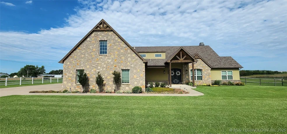 PRICE REDUCED! MOTIVATED SELLER! This home may qualify for ZERO money down thru USDA lending! Stunning masterpiece home on 1 acre homesite w 30'x60' shop. All exterior walls of the home are spray foam insulated. Cathedral ceiling front porch w large covered front patio w shiplap wood ceiling & dual 8' steel front doors. The cathedral ceiling continues into the home and foyer. Beautiful hardwood flooring in all living spaces, carpet in bedrooms, tile in baths. Kitchen w fantastic amount of cabinet & counter space. Cabinets go to the ceiling w glass uppers & under cabinet lighting. Walk-in pantry. Oversized granite island. Built-in stainless steel appliances & refrigerator included. All drawers & cabinets in the home are soft-close. Wonderfully large window in the Kitchen for natural light. Large Great Room w 18' cathedral ceiling w wood beams and stone fireplace that goes all the way to the 18' ceiling, with twin built-in shelving/cabinet sections on both sides (see virtual tour). The West wall of the Great Room and Dining Area is windows and a glass door, with transom windows on top of every window! This open floorplan is full of natural light, giving it an open and friendly feeling. Primary Suite is very large with tray ceiling and beautiful windows. Primary bath has an immense tiled shower with dual shower heads and rain head in the middle. Large walk-in season closet w/3 built-in dressers. Large "L" shaped Game Room with a billiards section (pool table included) and a 2nd leg for cards, video games, darts, shuffle board, etc... Very large 2nd Game Room/Media Room. Huge covered patio (16'x52') with shiplap wood ceiling & curtain bar running the length of the space for privacy. Gas line for grill. Stone fireplace with TV connection pre-wired. 30'x60' shop has spray foamed ceiling, 220, heat, 2 large overhead doors. 2 car garage is very over-sized (27' x 30' m/l) with insulated walls and doors!