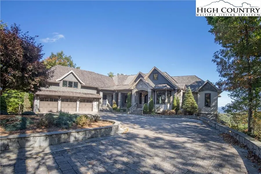 Atop a knoll at the end of Acanthus Trail in the esteemed Blue Ridge Mountain Club, this breathtaking mountain haven offers unrivaled views. A majestic entrance with Greek-style influences opens to a grand living area with an octagonal design and soaring ceilings. An impressive stone fireplace and towering windows highlight the mountain vistas. The home features a stately dining room, an elegant study, and a chef’s kitchen equipped with high-end Thermador appliances, bespoke cabinetry and granite surfaces. Adjacent is a cozy family area with another stone fireplace, varied seating, dining arrangements and a convenient wet bar. The extensive deck, featuring a traditional fireplace and grilling station, epitomizes outdoor living. The main floor houses an opulent primary suite with a luxurious bath and noteworthy walk-in closet. Additional accommodations include three guest suites and a potential extra suite. Entertainment features include an 11-seat home theater, a temperature-controlled wine room and a fully equipped gym. The lower level houses a vast granite bar and a versatile room ideal for dancing or games, with stone fireplaces adding warmth. An elevator links the main floors. A large cedar walk-in closet stores off-season clothes. Community amenities include Ascent wellness and fitness center, Lookout Grill, Jasper House, Watson Gap Park featuring pickleball courts, bocce ball and horseshoes as well as Chetola Sporting Reserve, a new pool and tennis court have been added in The Meadows. Fifty miles of hiking/UTV trails, fly fishing in pristine mountain streams and even a dip in the Blue Hole awaits you. This property combines luxury and adventure, inviting you to embrace a prestigious lifestyle in the High Country.