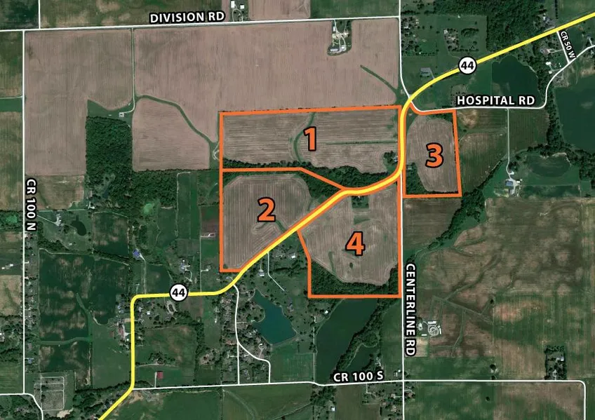 TRACT 4: 45+/- Acres, 37.77+/- Tillable, 6+/- Woods, 1.23+/- Acres with Home: 1,716 sq ft home with partial basement 4 Bedrooms Enclosed Rear Porch Small Garage