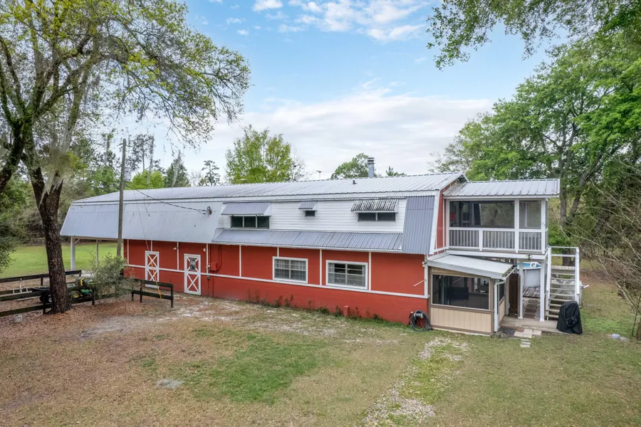 Welcome to the Red Barn Ranch! If youre looking for a 10-acre multi-generational home (two separate living areas) with the peace and quiet of the country, check this out! This barndominium features a two-bedroom, two-bathroom home with a huge kitchen and private Owners Suite with massive walk-in closet on the main floor with approximately 1,450 square feet along with two storage areas. Upstairs is a two-bedroom, one bath home with a huge kitchen and wood burning stove with approximately 1,450 square feet under air conditioning PLUS an unfinished living area of approximately 1,450 square feet that needs only drywall and finishing touches for additional living space. Both living areas boast a screened porch that is perfect for enjoying your new life in the country with a warm cup of coffee in the morning or a cool beverage in the evening under the bright stars. Additional features include an above ground swimming pool, RV cleanout, tons of storage space, tack room/stall under roof, and this crystal-clear drinking water from the 380 feet deep well is the best around! The front portion of this parcel is a fenced pasture and three sides of the entire property are fenced. Bordering the St. Johns River Management Area on the rear and just a short ride to the Ocala National Forest and Emeralda Marsh Conservation Area, peace and quiet and an unending outdoor adventure is at your fingertips! Public records indicates an A-1 zoning, so bring the whole farm! All measurements are approximate and zoning uses should be independently verified.