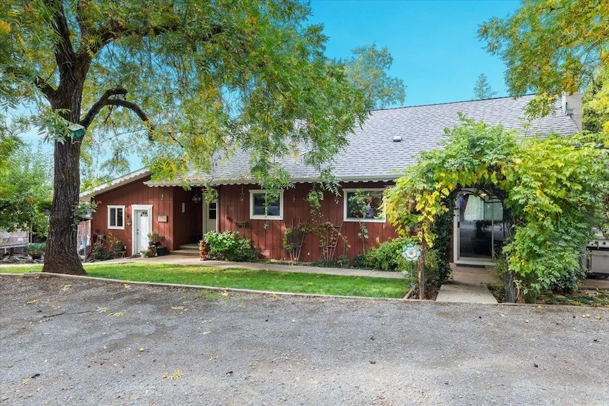 Charming Country Home on gated, fully fenced 1 acre. This property has thoughtful features for joyful country-life living. The home boasts approx. 2,057sf of living space with 3BD/2.5BA, spacious kitchen w/room for dining table; Lg living rm; huge bonus rm w/a half bath; separate mud/laundry/pantry area; 2BD & 1BA upstairs. Back-up generator covers everything (home/shop) if the power goes out. Well is approx. 40gpm & has a backup hand pump. The shop/garage has 100 amp service, auto doors, fully plumbed for air & is approx. 22'D x 40'L w/easy access attic storage. Two chicken coops, 2 dog kennels w/cover, add'l separate fenced play area, Large fenced garden approx 30'x50', small green house & productive vineyard designed to make Syrah wine -all w/inground drip systems (other areas have drip systems, too!). Kick back after a long day in the 8 person spa incl. Room for RV Pkg. Much more! Ask agent for the full Feature List!