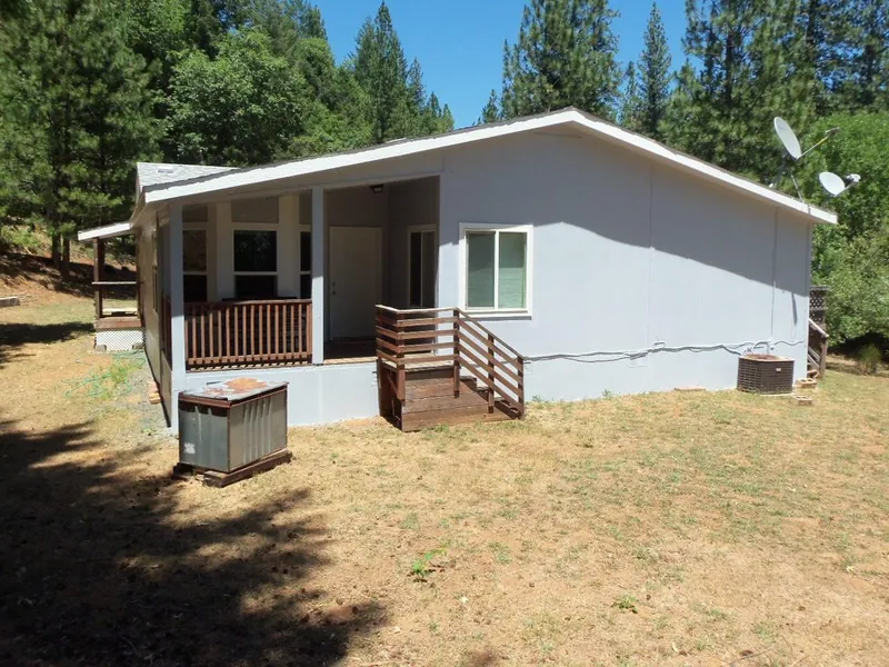 This beautiful home built in 2004 has an open floor plan, vaulted ceiling, large family room, a formal living room that includes a formal dining area. Enjoy your coffee in the kitchen dinette or on the covered patio deck. There is room for a closet package to make a 3rd bedroom or continue to use as hobby/den. It's pure pleasure driving this tree studded private road that opens up and lands you on a perfectly sized 3.73 acre lot with frontage on a spring fed creek. Step into the peaceful outdoors take a walk to the creek and spend the day as if you are on vacation.... in your own backyard. Enjoy the wildlife that occasionally pass thru this secluded property and marvel at the wonder of nature. Located close to the market, not far from the medical clinic. There is an oversized detached 2 car garage and storage shed. There is so much to share about this home and property! Take advantage of this rare opportunity for this private location.