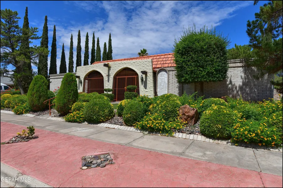 Welcome to 1717 Tommy Aaron Drive, where timeless character, space, and serenity meet in one of East El Paso's most distinctive homes. Enter through a grand central atrium bathed in natural light, wrapped in warm Saltillo tile, and step into an expansive living area designed for both relaxation and entertaining. The master suite features a newly renovated spa-like bath and an oversized walk-in closet converted from a former bedroom. Three additional large guest rooms and three more bathrooms offer incredible flexibility for families, guests, or multi-generational living. The 496 square feet enclosed patio with built-in hot tub provides year-round enjoyment with views of the open green space behind the property and no rear neighbors. A spacious three-car garage adds function and storage, while a private backyard pool completes the outdoor space with potential to make it your own. This home offers character, privacy, and uncommon square footage in a peaceful, established community.