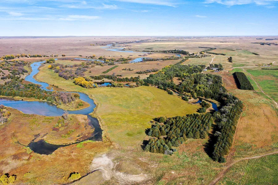 WM Zutavern Ranch is located near Dunning, Nebraska. The ranch consists of 21,282 total acres and boasts over four miles of Dismal River, six center pivots, backgrounding lots, sub-irrigated meadows, 500 head NFS grazing permit, and five homes.