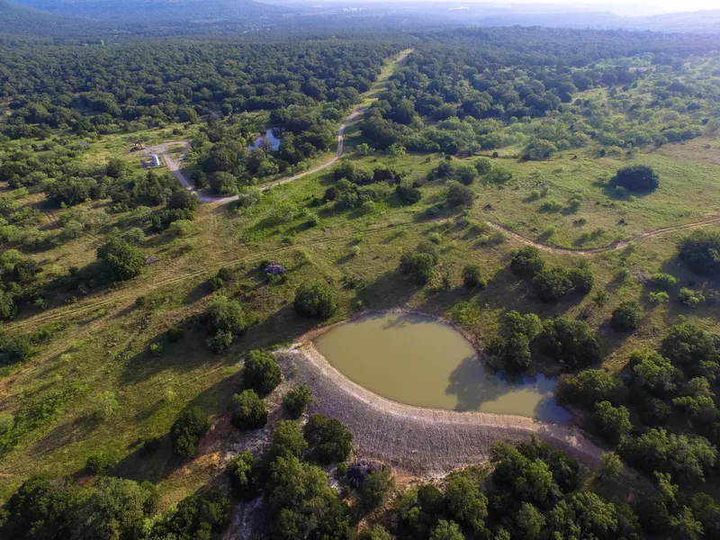 Water Excellent stock tank and opportunity to build a large lake in one of the deep draws. There is water well with electricity at the hunters cabin.
